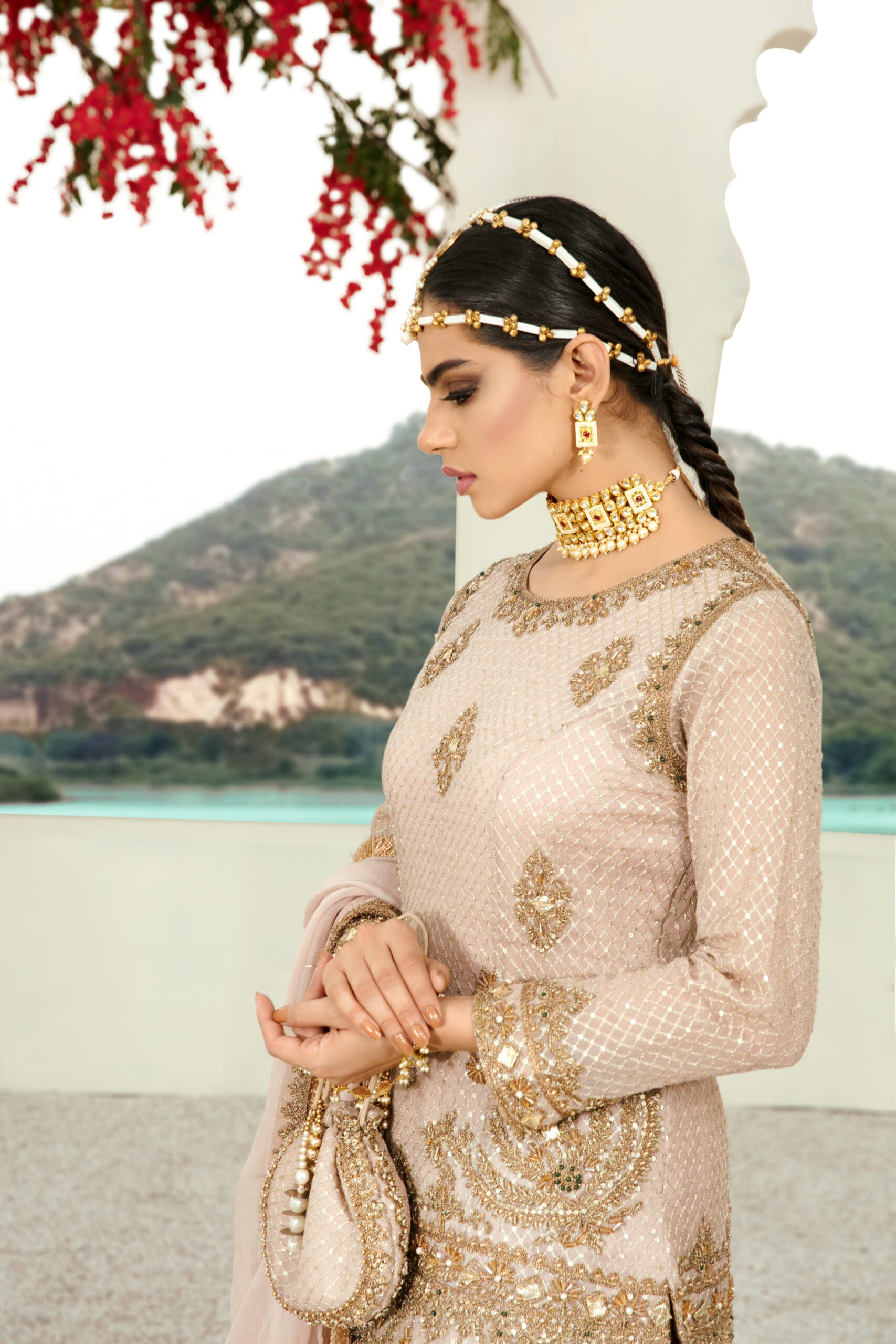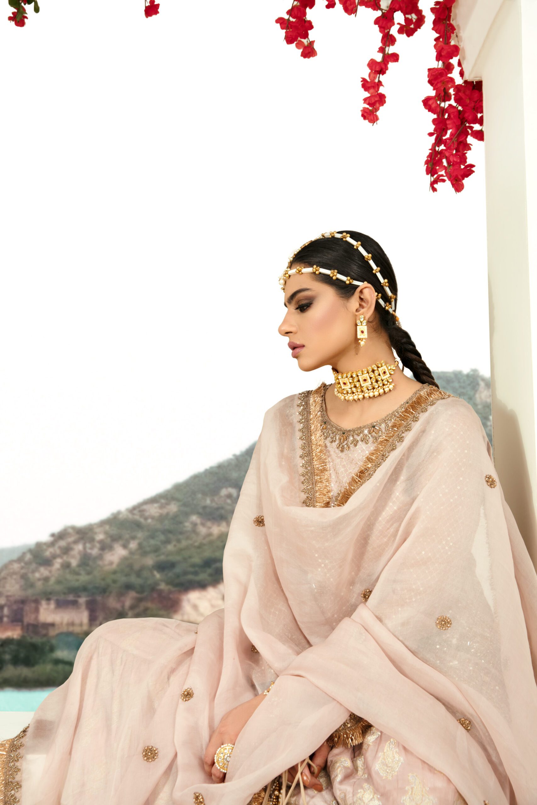 Dull pink pure Chiffon Kurti with dorri work also embalished with gotta patti dabka and pearls Gharara is made up with Pure Atlas fabric,Dopatta Made with pure Organza spray work on it and kiran on four sides.
